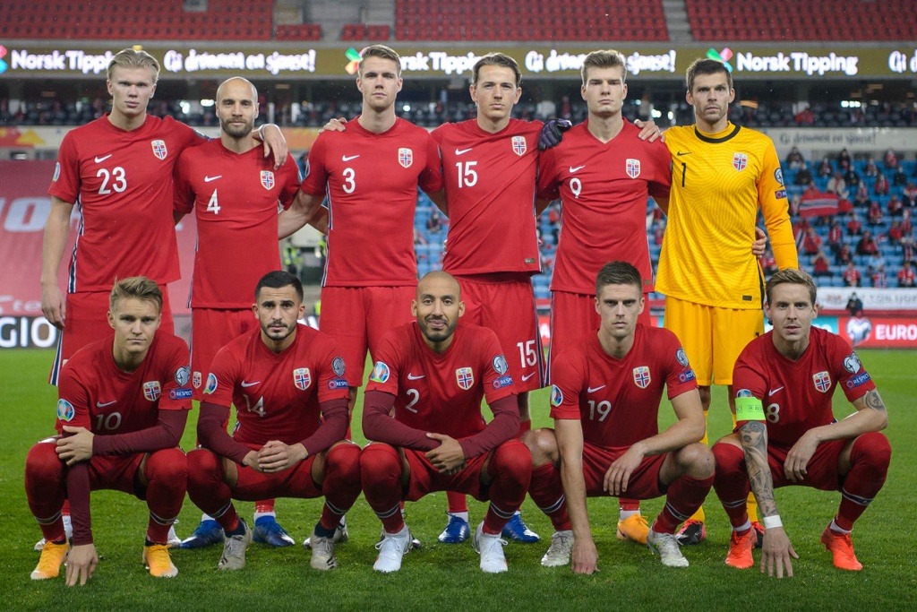 La Selección de Noruega, tiene una trayectoria internacional austera con tan solo tres copas del mundo y una Eurocopa, esta selección a pesar de ser una de las más antiguas de Europa, ha tenido que lidiar en sus procesos con los grandes de Europa, hecho el cual a opacado su desempeño a lo largo de su historia. Pese a que se fundó en el año 1902, recién disputó su primer partido internacional en el año 1908, en donde enfrentó a la selección de Suecia, el 12 de julio en Gotemburgo, encuentro que finalizó con una derrota aplastante de 11 a 3 a favor de los suecos, este partido se repetiría anualmente por mas de una década, y en su posterioridad en diversas competiciones y encuentros amistosos, transformándose hasta la actualidad en uno de los clásicos entre selecciones más importantes denominado como Kölen/Kjølen Derby el Derbi de Colonia o el Derbi Nórdico. Su debut en competiciones oficiales internacionales se llevó a cabo en los Juegos Olímpicos de Estocolmo en 1912 y registró una derrota y eliminación por 7 a 0 ante Dinamarca, como registro, Noruega registro derrotas en sus 27 primeros partidos internacionales y recién logra su primera victoria, diez años después de su primer partido, en un encuentro histórico en Oslo, en donde lograrían derrotar en 1918 a la selección danesa por 3 a 1. La selección de Noruega, tuvo un destacado y aceptable desempeño en la década del 30, en donde en los Juegos Olímpicos de Berlín del año 1936, logró una destacada participación eliminando a la misma Alemania. Luego dos años mas tardes, tendría su debut en los Mundiales en donde logró alcanzar los Octavos de Finales en el mundial de Italia 1938, siendo eliminada en la prorroga por la anfitriona. Luego de un receso de más de medio siglo, Noruega regresa al ámbito de las competencias internacionales, cuando en la década de los 90 logra clasificar a los mundiales de USA 94 y Francia 98, donde en este último logra la mayor hazaña del fútbol noruego en su historia logrando un triunfo histórico por 2-1 ante Brasil con goles de Flo y Kjetil Rekdal. Como antecedente, Noruega es junto con Senegal, la única selección que permanece invicta en todos los partidos ante Brasil. En cuatro partidos, Noruega tiene un récord de 2 victorias y 2 empates, en tres partidos amistosos y un partido de la fase de grupos de la Copa del Mundo de 1998.
